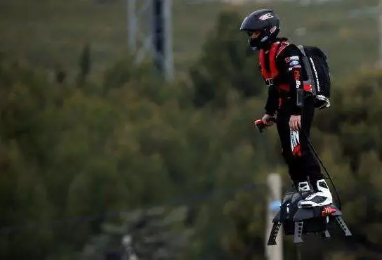 像此次Zapata所用的Flyboard Air悬浮飞行滑板拥有5个迷你引擎,各自功率为250马力,最高时速可达190km/h,由飞行人背包中的煤油供给能量。