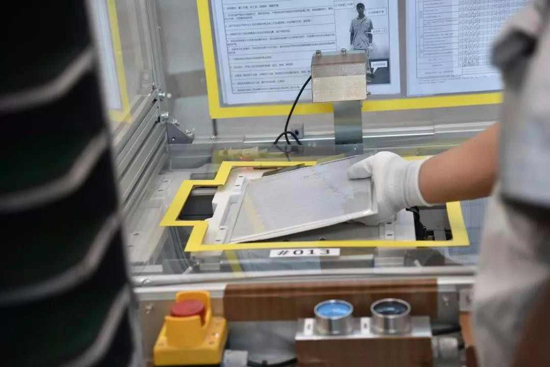 有趣的是,在电池模块上,我们除了那些常规的配置还能看到一层形似“白布”的东西。据技术人员介绍了解到,这层看似薄薄的“白布”可以让电池模块的防火等级达到2小时,不至于燃烧时影响到周边的电池。 在人工加压组装栅栏的程序中,实现了可视化作业指示系统,系统可做到100%全流程监控,操作合格便会显示“OK”,否则便是“NG”。同时,利用大数据分析检控系统可让装备过程可追溯,实现生产细节的系统录入和追溯,让电池管理控制器做到最大化的可靠。