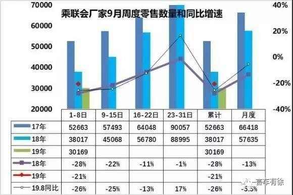 "金九银十"是汽车消费的传统旺季,但今年似乎"金九"不金。据此前乘联会公布的最新周度汽车销量数据:2019年9月第一周(9月1-8日),厂家乘用车日均零售销量为30169辆,与去年同期的38017辆相比,减少了21%。