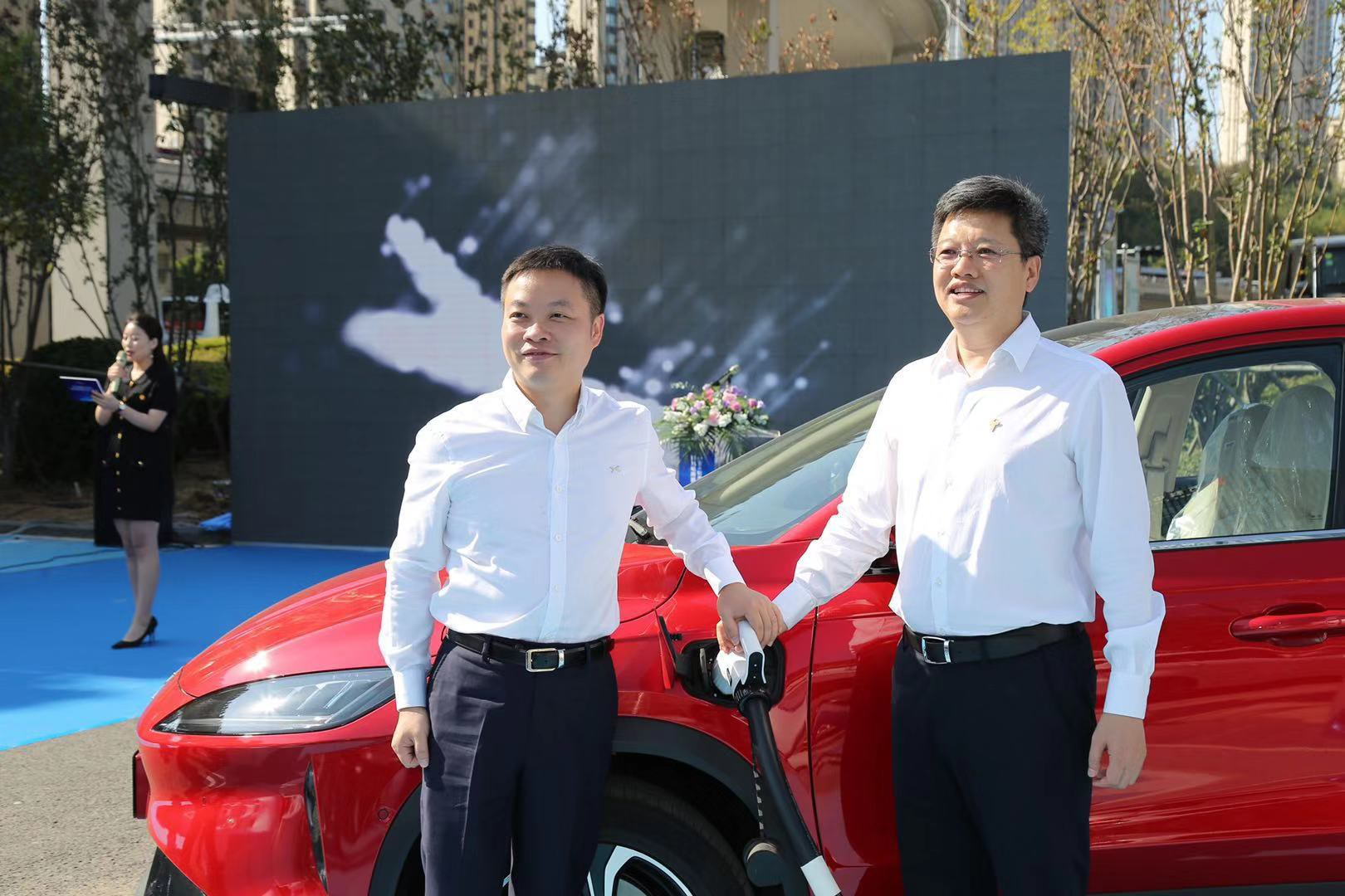 (左一:小鹏汽车董事长兼CEO何小鹏  右一:特来电董事长于德翔)