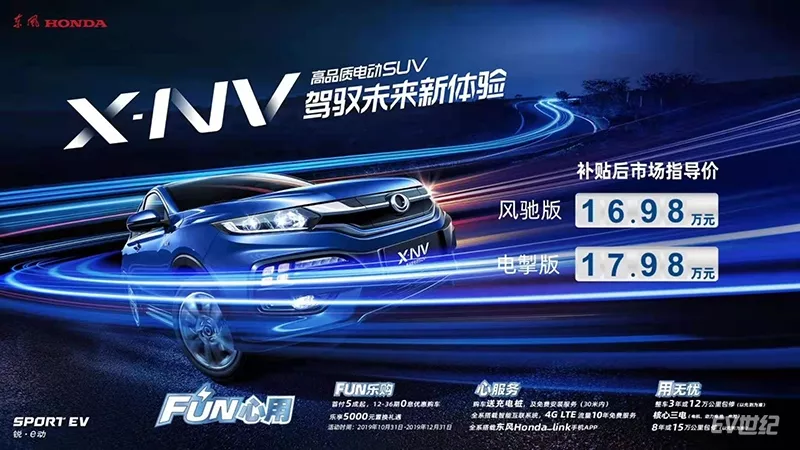 10月30日,又一款合资品牌的纯电动车型正式上市,来自东风本田的X-NV共推出风驰版和电掣版两款车型,补贴后售价16.98-17.98万元。
