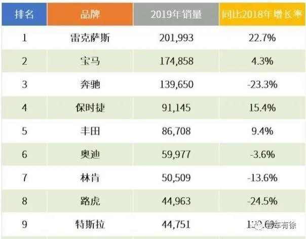 而且值得一提的是,雷克萨斯还拿下了2019年进口车销量榜冠军。事实上,大家对于进口车的销量一直都没有那么关心,但实际上如果我们想要观察消费升级和品牌向上这类概念或者说趋势,这些数据是不可或缺的,而雷克萨斯在去年又有所增长。当然,由于雷克萨斯、林肯和特斯拉在2019年都没有国产,所以这些品牌的进口车销量就是它们在华的整体销量,不过能在一年内就将进口车卖到20万辆,这确实是非常不简单了。