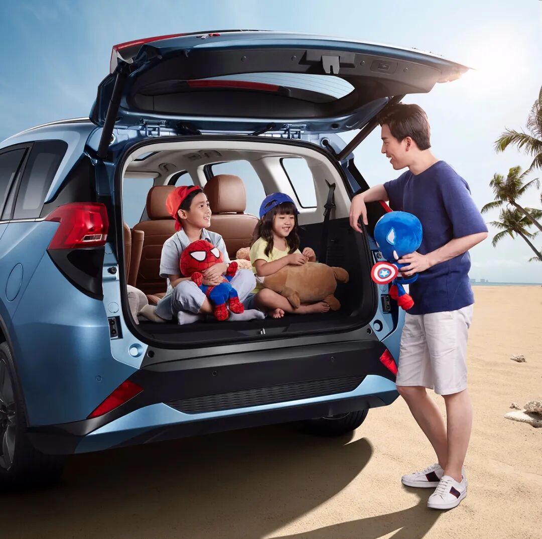 更长的车身、更大的轴距,加上“2+2+3”的座椅布局,杜绝了不少家用MPV车型满载7人不能载物的现象。空间够不够大,用实力来说话。和同级车相比,海马7X的宽阔空间可以说是遥遥领先了一个身位。 02二胎家庭“保姆车”,更安全更有爱