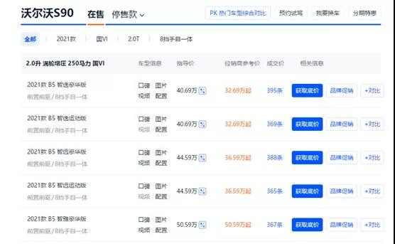 据了解,沃尔沃第二代SPA平台最快要在2022年面世,全系产品实现换代则需要更长时间。在此之前,沃尔沃要保持销量的持续增长,唯一可取的途径就是加大终端让利幅度——事实上,他们早就这么干了。 自2018年开始,沃尔沃S90(指导价40.69-50.59万)入门车型的终端售价就一直徘徊在30万左右,全系车型终端价格与同级别的宝马5系、奔驰E级相差了近10万元。再看XC90,这是沃尔沃的旗舰SUV,目前的优惠幅度都是10万元起步,终端售价同样与奥迪Q7、宝马X5等相差甚远。 沃尔沃S90目前的终端售价情况(广州市场为例)。