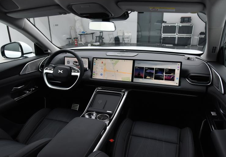 内饰部分,作为一款中大型SUV,小鹏G9在豪华感以及科技感上的营造还是很到位的。它使用了经典的暖棕色配色,搭配起来很显高级感。此外中控台上的三款大屏幕也格外亮点,功能性上依次为仪表盘屏幕、中控屏幕以及副驾娱乐屏幕,另外配合上小腿托、带冷暖光调节的化妆镜,座椅位置还可实现“一键入镜”,独立记忆化妆习惯坐姿,为副驾驶的女性提供舒适的体验。