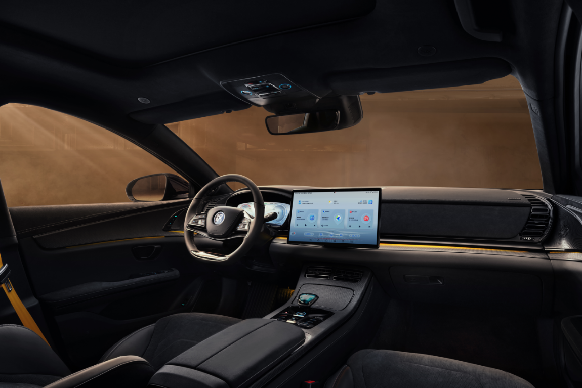 在内饰方面,汉DM-p战神版内饰加入了一系列的运动元素与高档用料,极黑高档类麂皮辅以黑色碳纤维材料点缀,同时配有一体式运动座椅、金甲黄安全带,整车内饰运动感潮奢升级,与个性外观、甲胄灵感配色相得益彰。