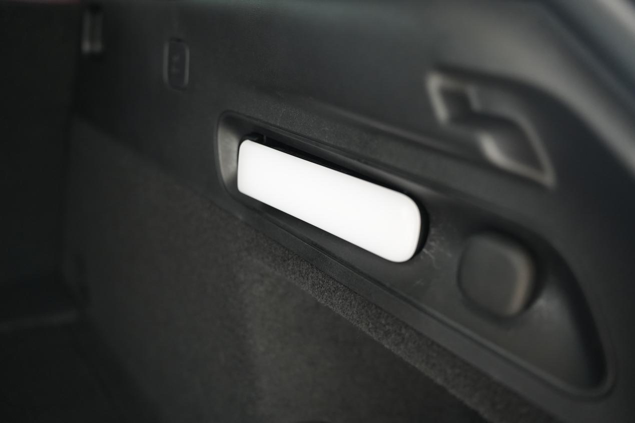 在细节的拓展上,除了拥有网兜、挂钩和LED补光灯外,ET5 Touring还充分考虑了露营或日常使用场景下对光源的需求,因此,后备箱右侧的补光灯还被设计为可取下。