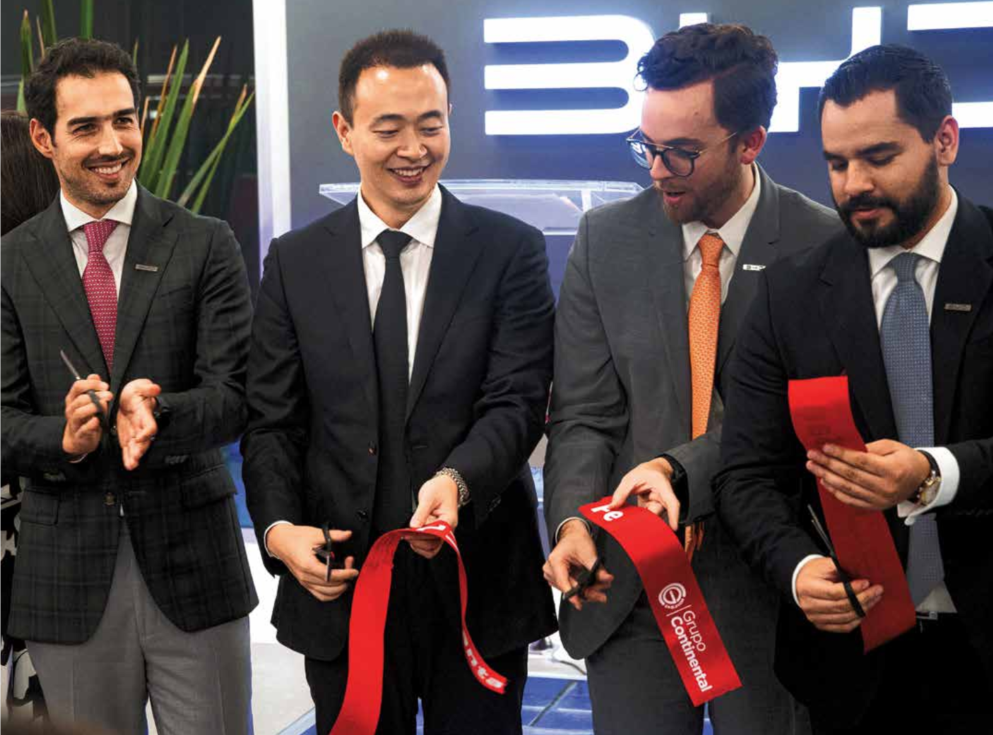 比亚迪在墨西哥城的门店开业剪彩仪式 “作为一家全球性公司,我们希望为消费者提供优质的技术和产品,通过清洁高效的出行方式,改善城市生活的质量。比亚迪墨西哥门店的开业,让当地消费者更方便、更直观地了解和体验我们的新能源汽车,“邹舟补充道。