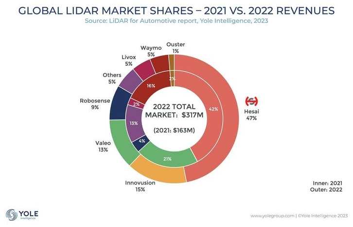 截至目前,禾赛激光雷达累计交付量已超过19万台。据国际权威研究机构Yole Intelligence最新报告显示,禾赛连续两年蝉联车载激光雷达市占率全球第一,以47%的份额领跑全球车载激光雷达市场。