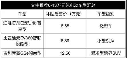 购买紧凑型纯电动跨界SUV?帝豪GSe了解一下。 总结来看,从微型车到小型SUV,再到紧凑型跨界SUV,纯电动车型越来越多了,考虑到限行限牌现状,推荐这几款车给有需求的朋友。