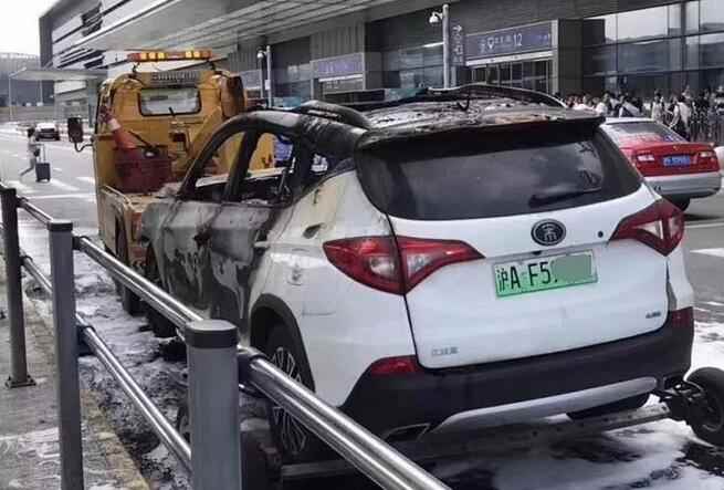 据报道称,8月4日下午一点半左右,上海虹桥火车站出发层,南10进站口附近,一辆油电混合动力的白色比亚迪宋SUV私家车发生起火自燃。现场冒起浓浓大烟,引起附近人群围观。