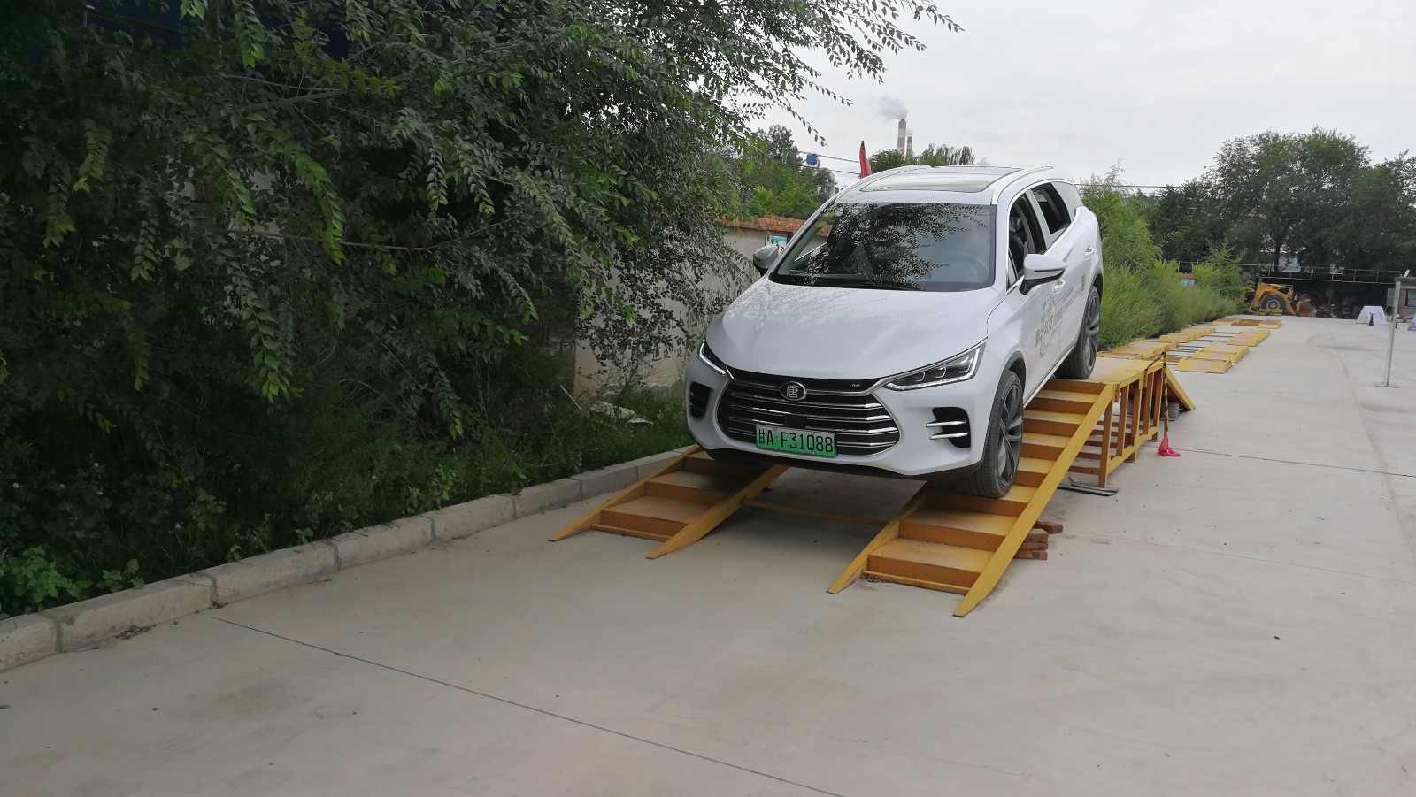 你看场地边,大唐正以独有的全时电四驱在模拟的复杂路面上进行脱困表演,不论是湿滑路面、坡面路,还是交叉桥,“大唐”都顺利驶出,轻松脱困。
