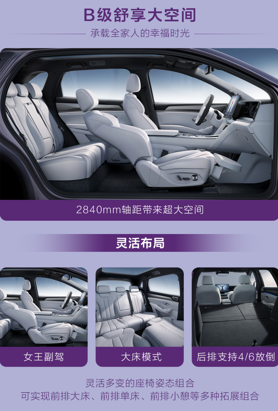 在空间方面,宋Ultra EV拥有2840mm的轴距,带来了越级的前后排空间。后排腿部余量充足,甚至支持“大床模式”——前排座椅放倒后与后排贯通,形成1.8米平整空间。这一设计对于家庭出行、长途休憩甚至短时夜宿场景都具有显著价值。