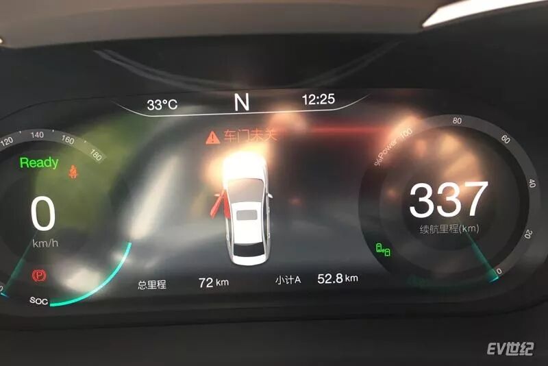 在行驶了52.8公里后,车辆剩余里程显示337公里,相加为389.8公里,0.2公里左右的差距几乎可以忽略不记了。还有一点要说明,行驶后的续航里程显示图是在午间就餐完成后拍摄的,车辆静置大约一小时左右,排除了行车电脑反应慢以及“快乐表”的情况。
